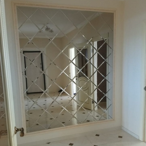 Использована зеркальная плитка "вытянутый ромб" с фацетом.