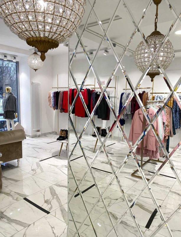 Использована серебристая зеркальная плитка "вытянутый ромб".